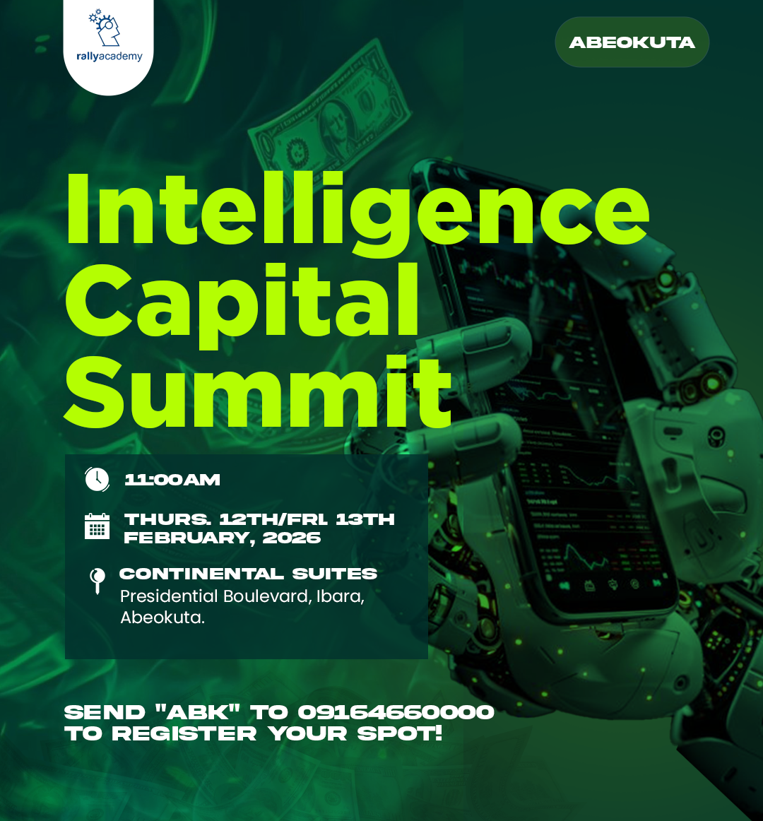 Rally Academy (the educational arm of RallyTrade) is organizing a special event for professional and aspiring traders in Abeokuta for a two (2) days Intelligence Capital Summit.Day 1: Thursday, 12th February, 2026Day 2: Friday, 13th February, 2026Venue: Continental Suites, Presidential Bouleva...